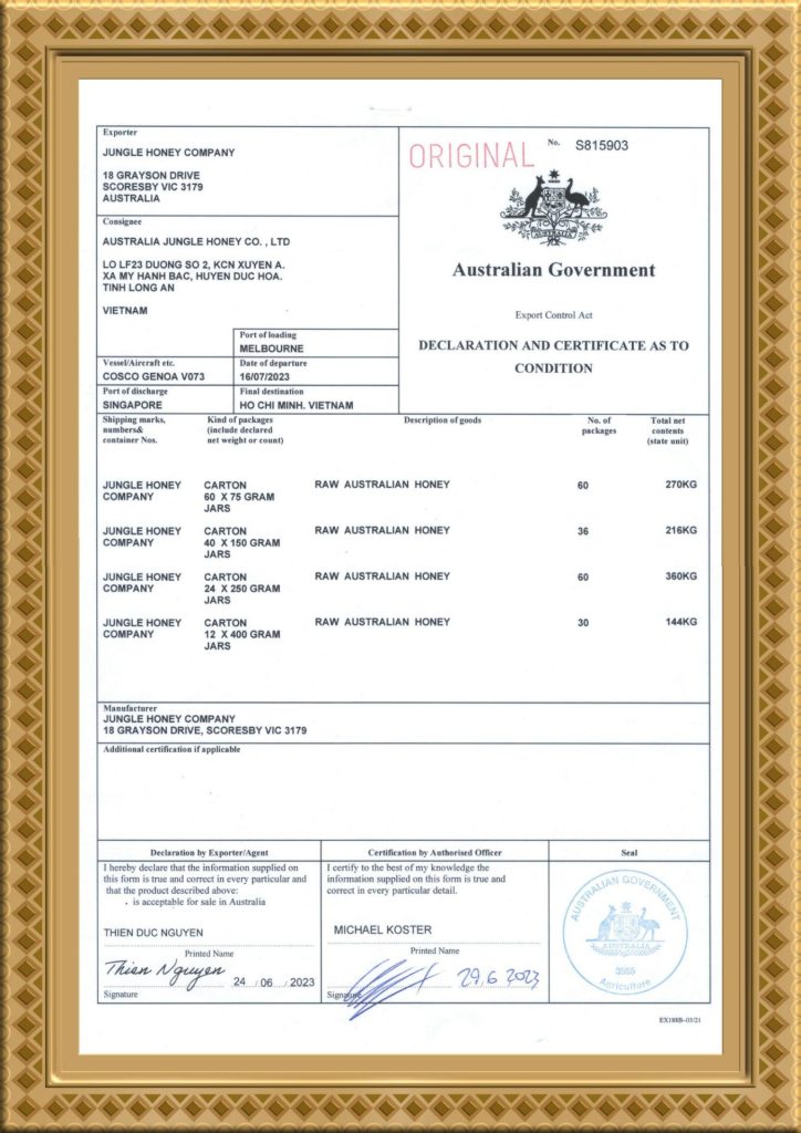 Công ty Mật Ong Rừng Australia (VN) hợp tác cùng Công ty Jungle Honey (của Úc) cùng khai thác mật ong rừng ở Úc sau đó nhập khẩu về VN.